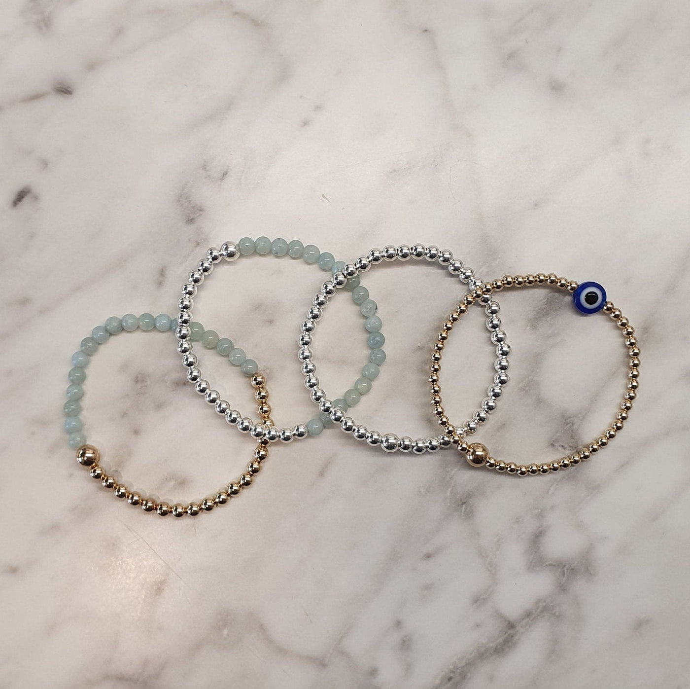 Half Amazonite semi precious and half 14k Gold Filled or Sterling Silver beads of your choice.